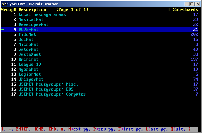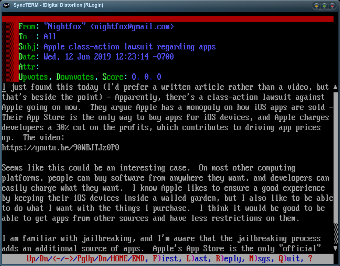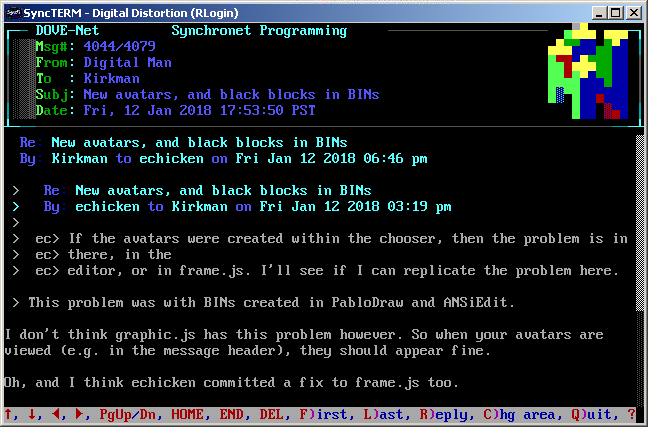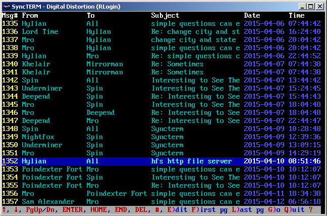 Synchronet. The reader interface allows scrolling the message up & down,