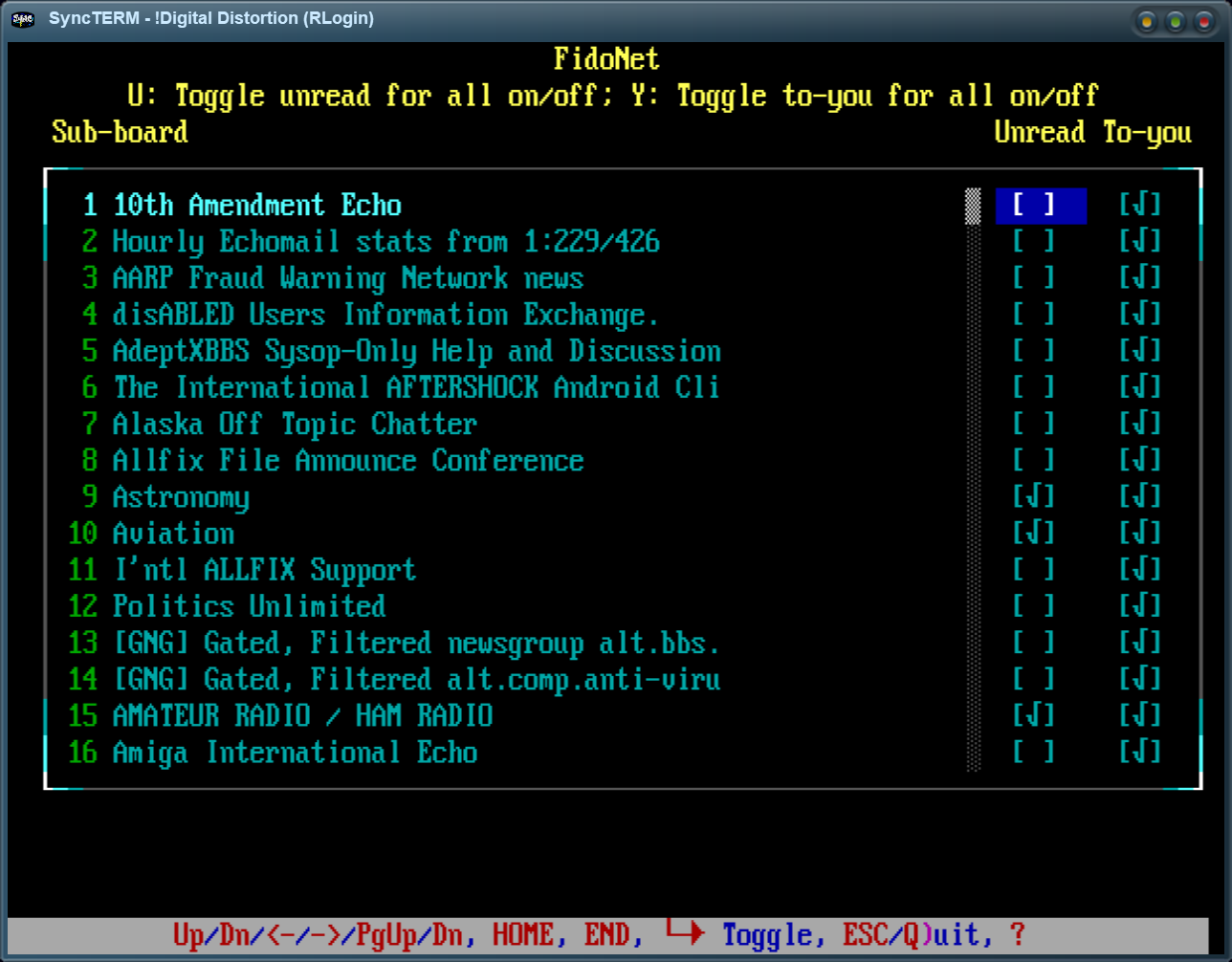 & to-you configuration) for the various message sub-boards on the BBS, with a lightbar interface.