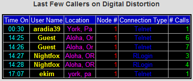 Today's Callers script. The colors can be easily changed by the sysop (by