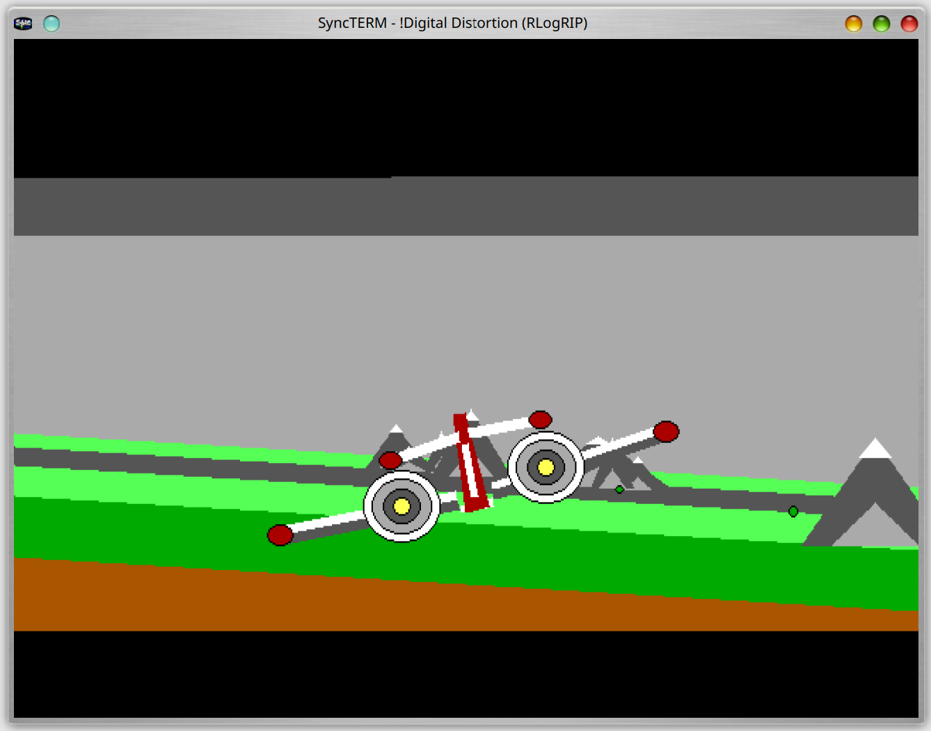 game is flickery, but is interesting to see. The initial screen shows a RIP or sixel background image if the